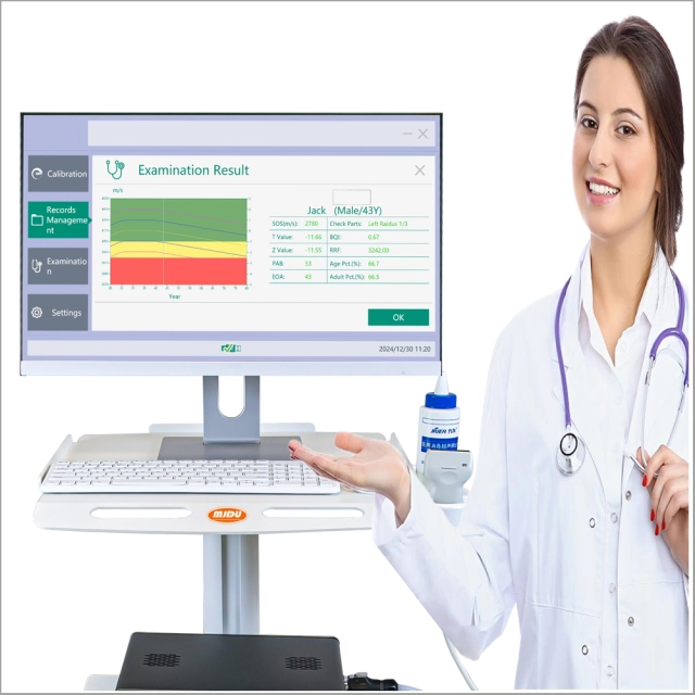 Portable bone density scanners are transforming patient diagnostics by offering mobility and convenience that traditional stationary equipment cannot. The MJD-9000B, a notable advancement in orthopedic medical equipment, allows healthcare providers to conduct bone density tests directly in mobile clinics and hospitals. This flexibility ensures that patients receive timely assessments, which are crucial for early detection and treatment of conditions like osteoporosis. The scanner's comprehensive setup, including a cart, software, and accessories, supports various healthcare settings, making it a versatile addition to the bone densitometer market. The precision and reliability of its measurements, including ultrasound speed of sound and T-value, empower clinicians to make informed decisions, ultimately improving patient outcomes.